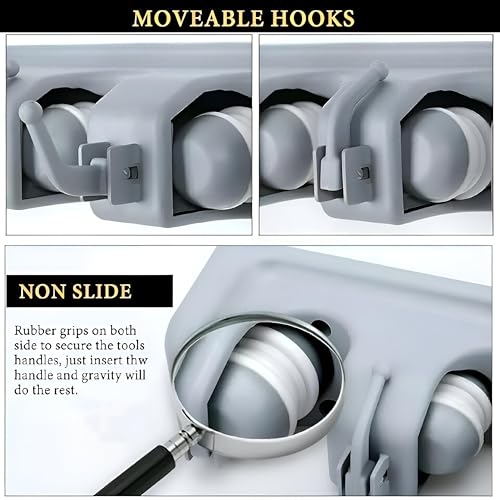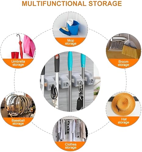 - مزود بستة خطافات متينة، لا يستوعب هذا المنظم المكانس والمماسح فحسب، بل يوفر أيضًا مساحة تخزين إضافية لتعليق أقمشة التنظيف والفرش وغيرها من الضروريات. تضمن هذه الميزة متعددة الوظائف وضع جميع مستلزمات التنظيف الخاصة بك بشكل مريح في مكان واحد، مما يجعل روتين التنظيف الخاص بك أكثر كفاءة وبساطة.