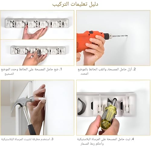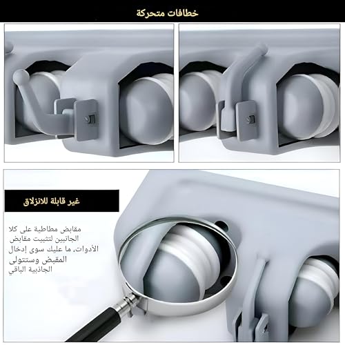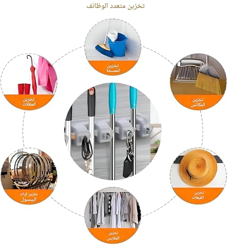 - مزود بستة خطافات متينة، لا يستوعب هذا المنظم المكانس والمماسح فحسب، بل يوفر أيضًا مساحة تخزين إضافية لتعليق أقمشة التنظيف والفرش وغيرها من الضروريات. تضمن هذه الميزة متعددة الوظائف وضع جميع مستلزمات التنظيف الخاصة بك بشكل مريح في مكان واحد، مما يجعل روتين التنظيف الخاص بك أكثر كفاءة وبساطة.