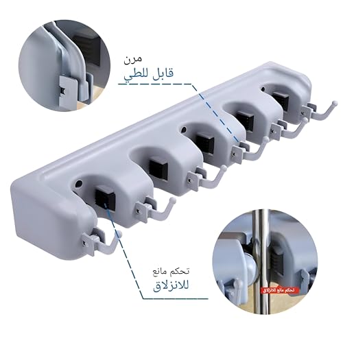 - تم تصميم منظم المكنسة والممسحة ذو الخمس فتحات للحفاظ على جميع أدوات التنظيف مرتبة بدقة وسهولة الوصول إليها. قل وداعًا للخزانات الفوضوية والمكانس المتشابكة! يوفر حل التخزين المبتكر هذا مكانًا مخصصًا لكل أداة، مما يضمن بقائها في مكانها بأمان دون خطر الانقلاب أو التلف.