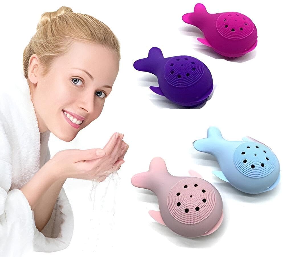 Generic - اداة تنظيف - اداة تنظيف وجه صغيرة من السيليكون على شكل حوت لتقشير عميق وتجديد البشرة وتدليك مريح لتحسين لون البشرة وملمسها بشكل عام (قطعتان من اللون الموضح)