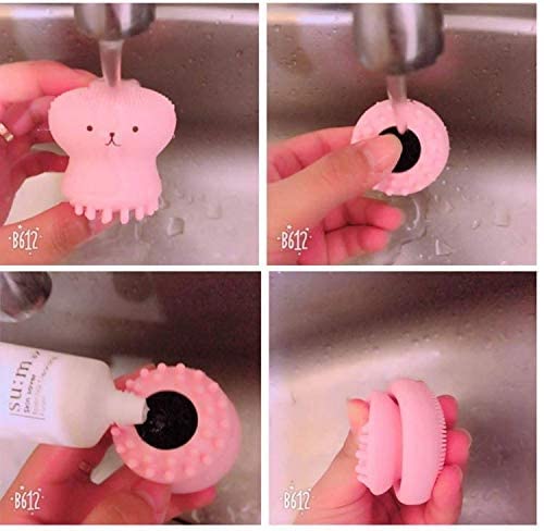 Spaceshoop - ادوات تنظيف فرشاة سيليكون صغيرة على شكل اخطبوط بينك