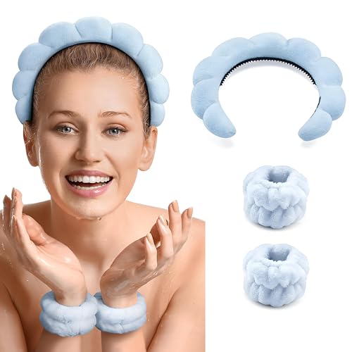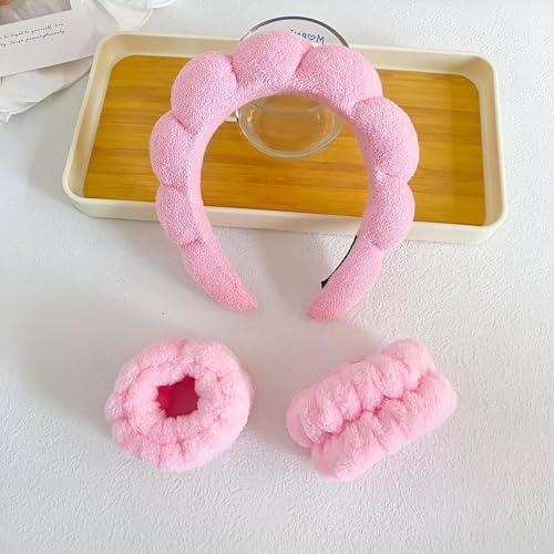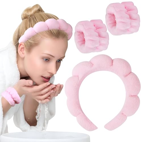 Generic - أربطة معصم من لقماش الناعم للتنظيف وروتين العناية بالبشرة، مجموعة مكونة من 3 قطع لغسيل الوجه بلا مجهود وأيام السبا