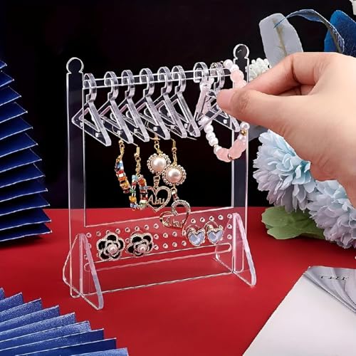 Generic - منظم إكسسوارات أكريليك شفاف مع أستاند وخمس شماعات لحفظ وترتيب الحلقان والخواتم والسلاسل تصميم أنيق وعصري عملي مناسب للمنزل والمكتب