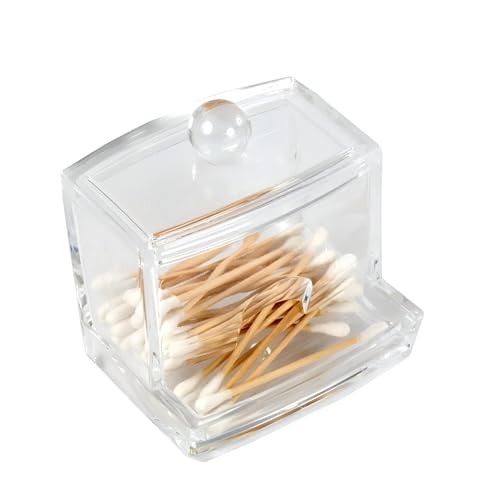 Generic - حامل أكريليك شفاف لمسحات القطن ، مصمم بغطاء لسهولة التوزيع، مثالي لتنظيم منصات القطن وإسفنجات المكياج ومستحضرات التجميل المختلفة