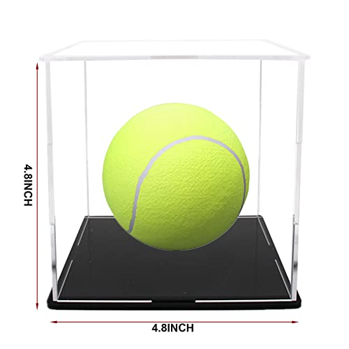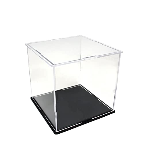 WANLIAN - حافظة عرض من الأكريليك الشفاف، صندوق عرض ذاتي التجميع مع قاعدة أكريليك سوداء، صندوق منظم مكعب، حامل رافع للحماية من الغبار لعرض المجسمات والألعاب والمقتنيات (4.7 × 4.7 × 4.7 بوصة)