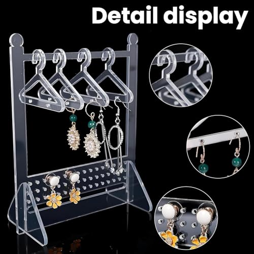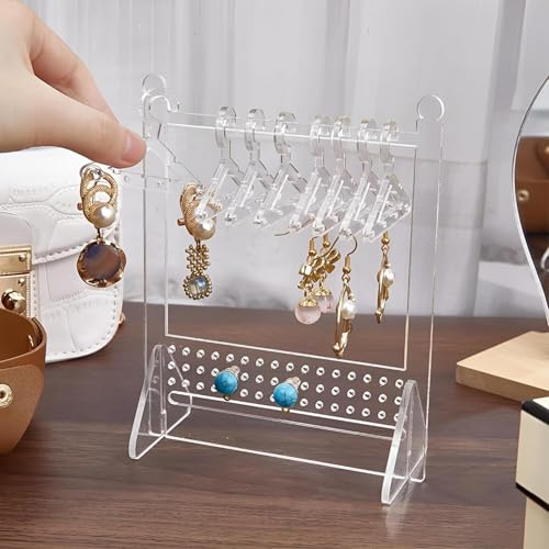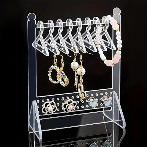 AREXOL - منظم مجوهرات من الاكريليك الشفاف مع خمس شماعات وقاعدة ثابتة، منظم مجوهرات عملي موفر للمساحة
