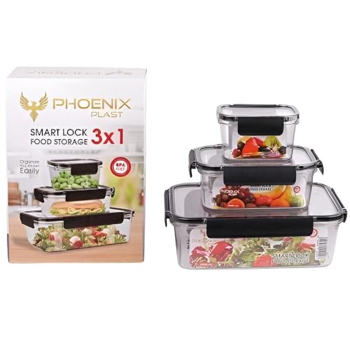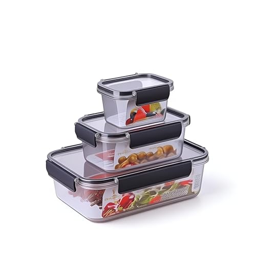 Generic - حاويات طعام اكريليك شفافة - مجموعة من 3 قطع مع اقفال مانعة للتسرب وحواف من السيليكون لنضارة الثلاجة