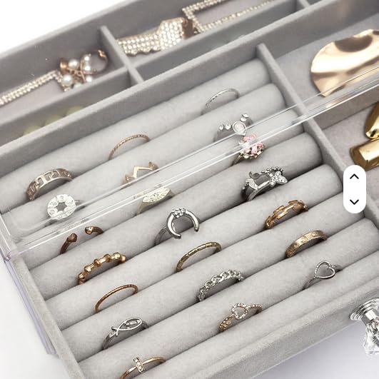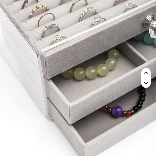 - تصميم شفاف للغاية: يوفر الهيكل الأكريليك الشفاف رؤية غير محجوبة للمحتويات وحماية من الغبار، مما يجعل اختيار المجوهرات بجهد قليل مع إضافة جاذبية عرض أنيقة.