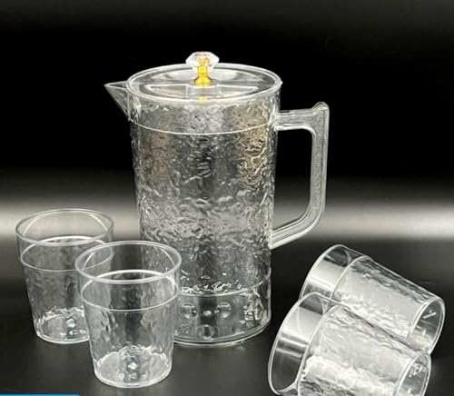 Generic - دورق أكريليك شفاف مع 4 أكواب، سعة 1 لتر، تصميم مشبر بقاعدة بصمة ومقبض كريستال، طقم شربات للمياه والعصائر، 5 قطع