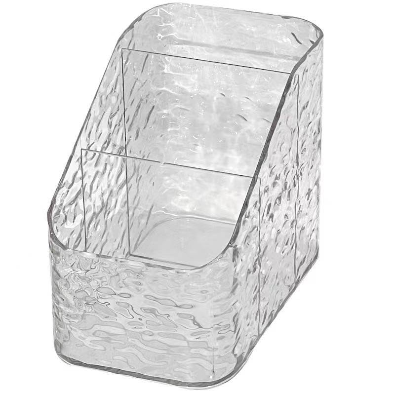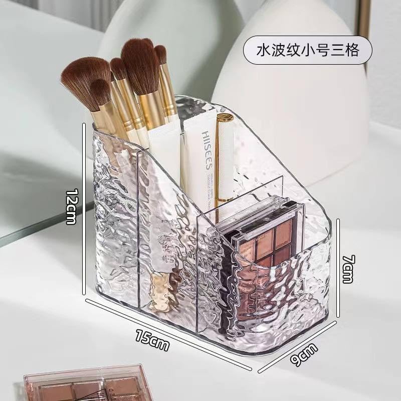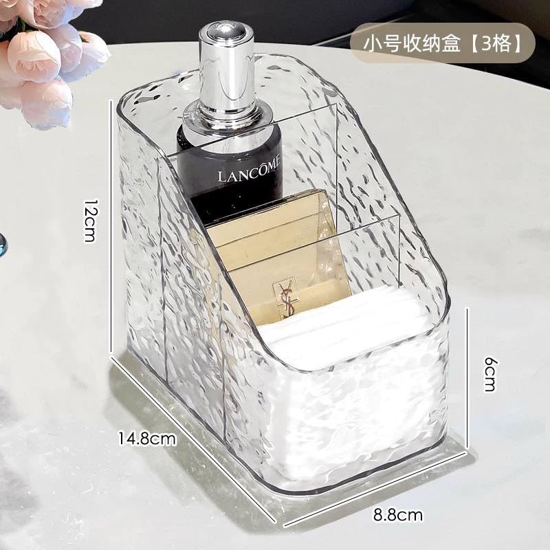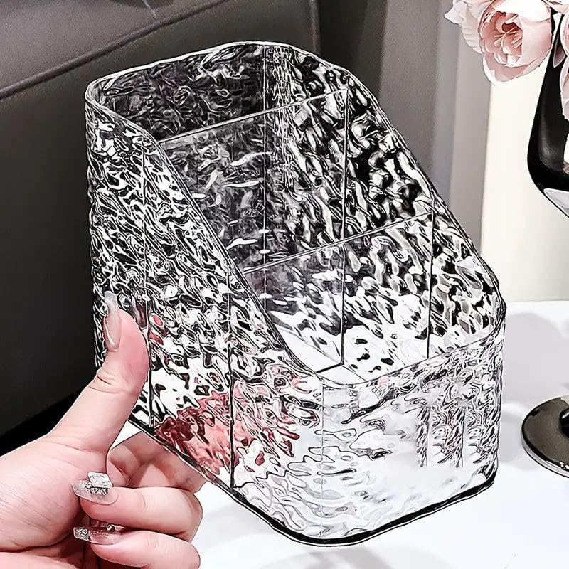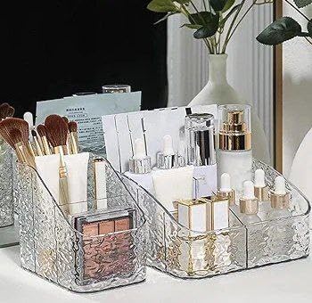 • تصميم منسوج أنيق: منظم مكياج أكريليك شفاف بتصميم منسوج فاخر يضيف لمسة جمالية عصرية لطاولة الزينة أو الحمام
