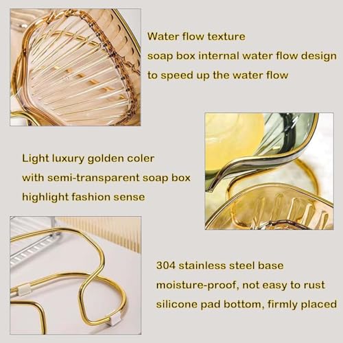 AREXOL - صبانة شفافة من اكريليك مع حامل معدني ذهبي لتصريف المياه وحماية الصابون تصميم عملي للحمام والمطبخ Soap Organizer