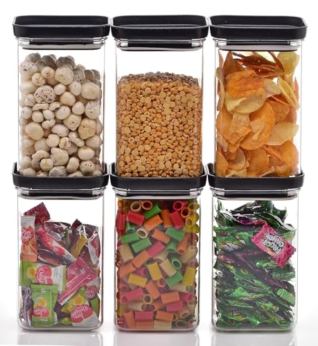 AREXOL - طقم علب تخزين أكريليك شفاف 9 قطع بأحجام متنوعة مع أغطية محكمة لحفظ البقوليات والسكر والقهوة والشاي وتنظيم المطبخ بسهولة وأناقة مثالية
