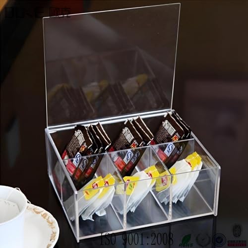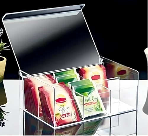 Generic - منظم اكياس شاي اكريليك شفاف - صندوق تخزين من 6 اقسام مع غطاء للشاي والقهوة والتوابل والمكياج والادوية، تصميم شفاف متين لسهولة الوصول والتخزين المنظم على سطح الطاولة