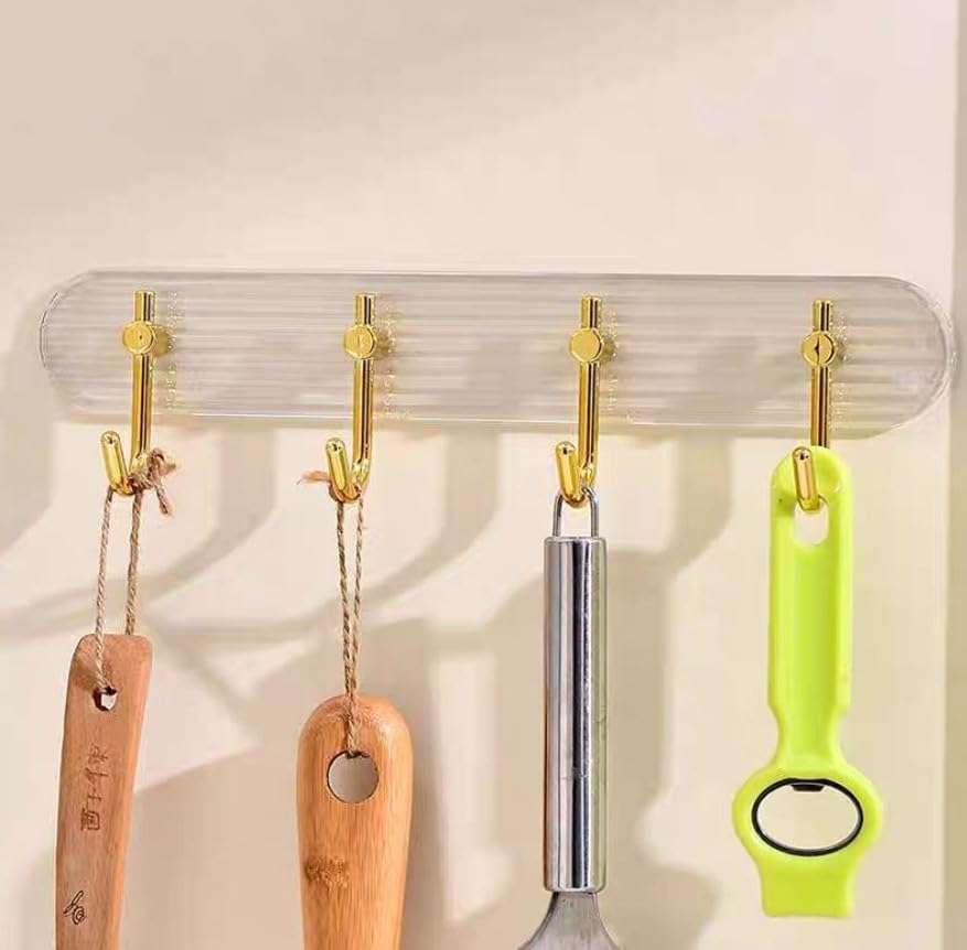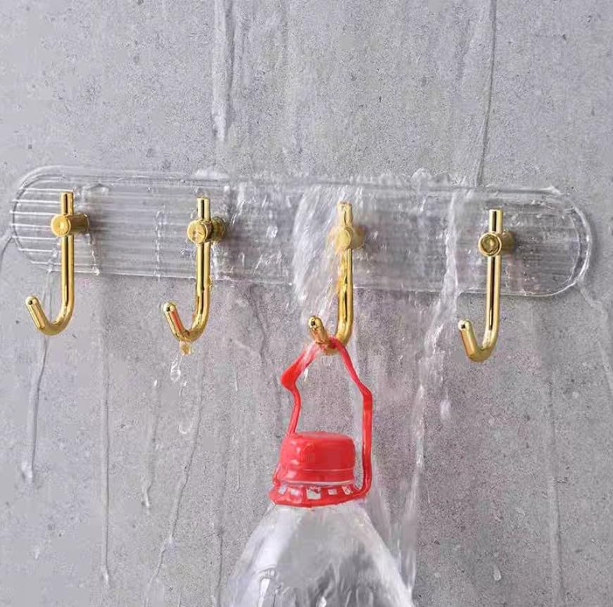 Generic - رف حائط اكريليك شفاف مع 4 خطافات ذهبية، شماعة لتعليق الفوط في المطبخ والحمام