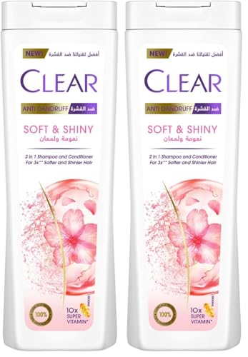 Clear - كلير شامبو وبلسم مضاد للقشرة 2 في 1 ناعم ولامع، لشعر اكثر نعومة ولامعا 3 مرات، 180 مل (عبوة من قطعتين)