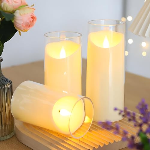 Generic - شمعة شفافة - أكريليك عمودية مع ضوء LED تعمل بالبطارية للديكور المنزلي تحاكي مظهر اللهب الطبيعي دون أي مخاوف تتعلق بالسلامة 3 مقاس 7 سم