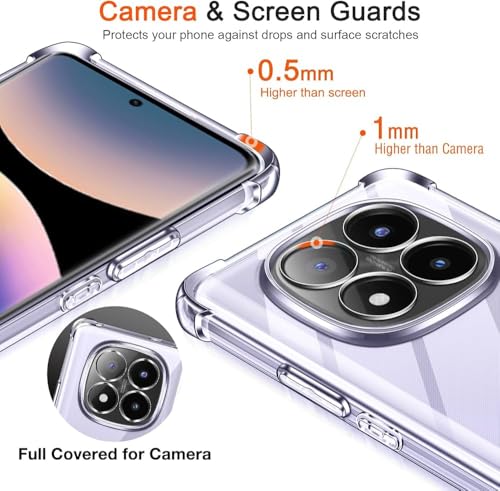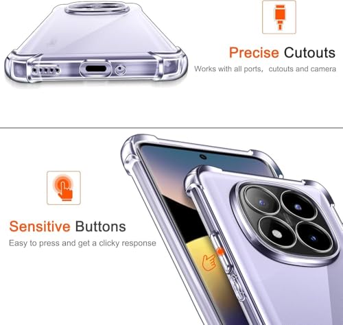 عام - جراب حماية شفاف ممتص للصدمات من البولي يوريثين الحراري الناعم، جراب حماية رفيع وناعم من السيليكون والبولي يوريثين الحراري لموبايل شاومي ريدمي نوت 14 برو بلس شبكة الجيل الخامس 5G