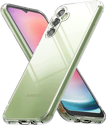 ELMO3EZZ - حافظة شفافة لهاتف سامسونج جالاكسي A24 - ناعمة ورفيعة ومضادة للصدمات من البولي يوريثين الحراري مع وصول جانبي ببصمة الاصبع - بدلة واقية كريستالية ELMO3EZZ أخضر