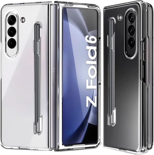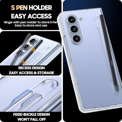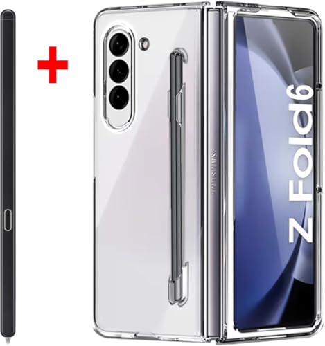 جراب حماية شفاف رفيع بحامل قلم S مدمج مضاد للاصفرار بحواف ممتصة للصدمات لموبايل سامسونج جالاكسي Z فولد 6 مع قلم S (لون جراب شفاف + قلم S)