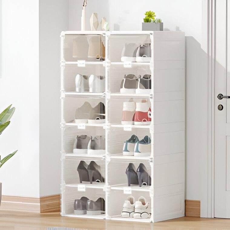 Generic - منظم خزانة شفاف - صندوق تخزين احذية شفاف من ست طبقات مصمم للطي بشكل مسطح، سهل التجميع، هيكل متين للمنزل والمكتب، يحافظ على الاحذية والاكسسوارات منظمة بشكل أنيق. (2)