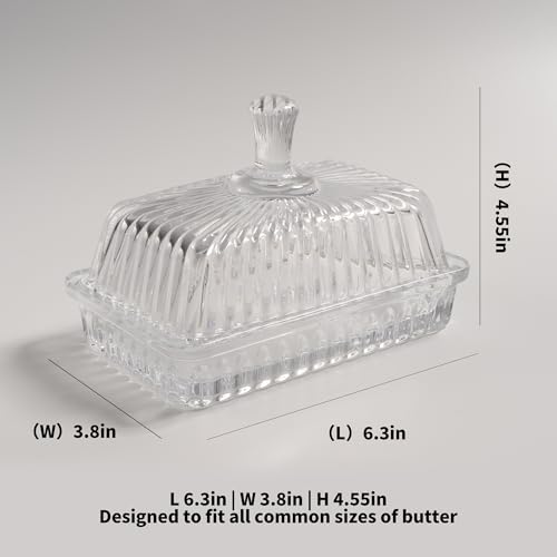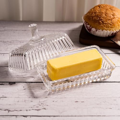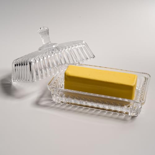 - طبق زبدة زجاجي مع غطاء - مصنوع من زجاج كريستالي شفاف فاخر ومتين، يعرض مكوناتك بشكل جميل، مما يضمن بقاء الزبدة طازجة وجاهزة للتوزيع.