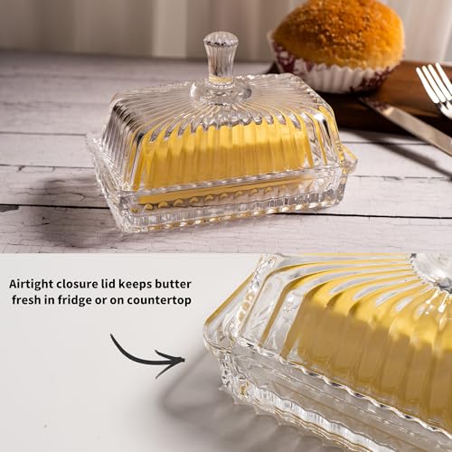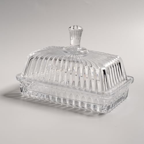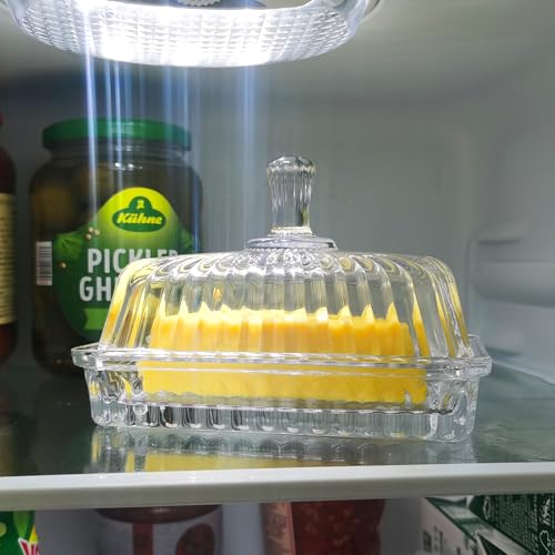 QIANCHANG - طبق زبدة زجاجي شفاف مع غطاء صينية حامل أعواد الزبدة المغطاة حاوية تخزين زبدة زجاجية كريستالية لطاولة المطبخ والثلاجة