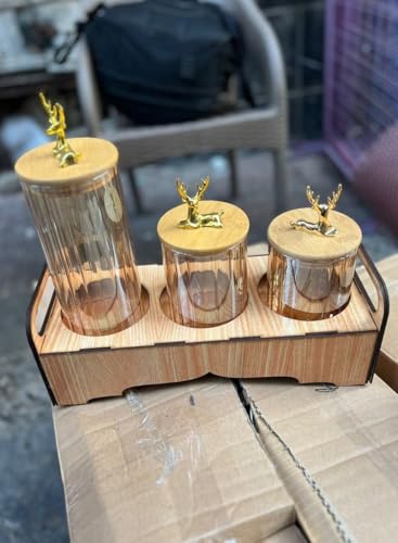 Generic - طقم برطمانات زجاجية شفافة من 3 قطع مع غطاء خشبي محكم الغلق وحلقة معدنية لتخزين الحلوى والمعكرونة والمكسرات ودقيق الشوفان باحجام مختلفة بأفضل جودة وتصميم فريد