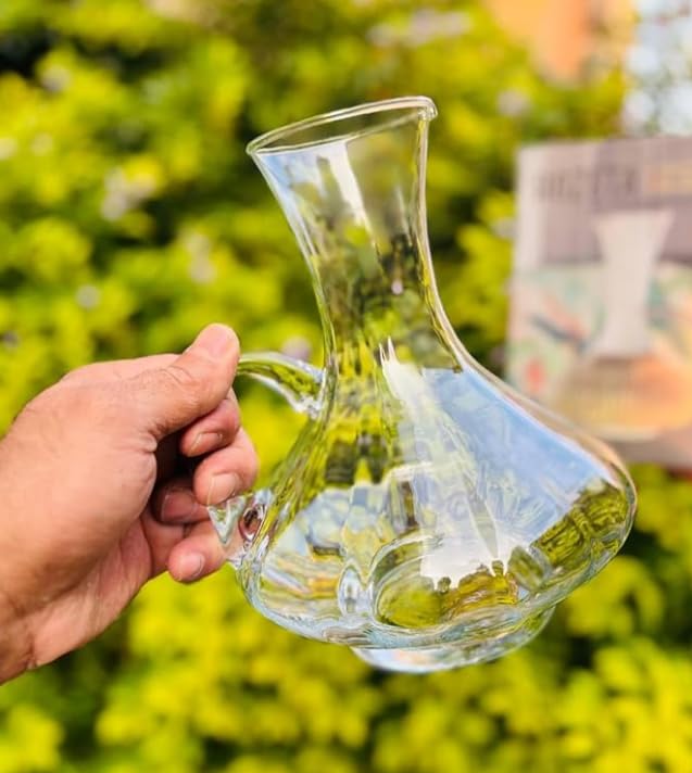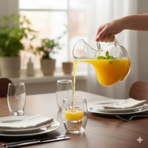 Generic - ابريق زجاجي شفاف بقاعدة عريضة ثابتة ومقبض سهل الامساك - ابريق شفاف انيق للمياه والعصير والشاي المثلج والمشروبات الباردة، ابريق مقاوم للحرارة للمنزل والمطبخ وطاولة الطعام وتقديم الطعام في الهواء الطلق