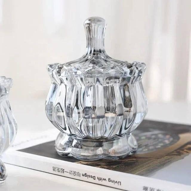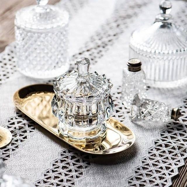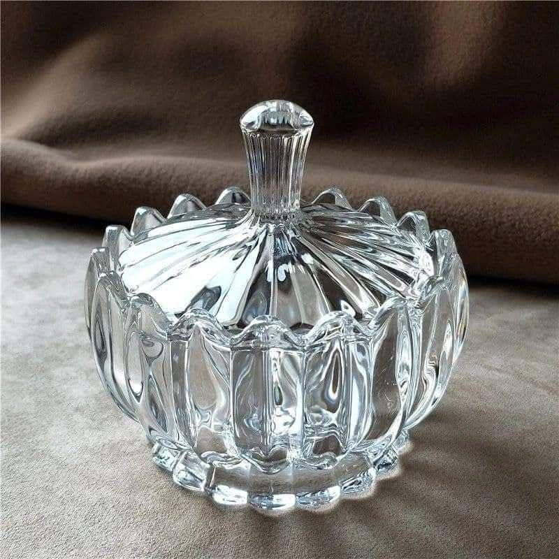 - سكرية زجاج شفاف | وعاء سكر صغير مع غطاء زجاج شفاف بجدار مضلع وشكل أنيق (برازيليا) بونبونير