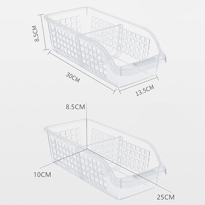- تصميم متعدد الاستخدامات: حاوية تخزين بلاستيكية شفافة مثالية لتنظيم محتويات الثلاجة، تتميز بتصميم سلة عملي مع فتحات تهوية لتدوير الهواء بشكل صحيح
