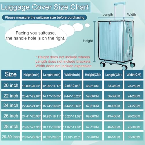 - عملية وقابلة لإعادة الاستخدام. غطاء أمتعة شفاف قابل لإعادة الاستخدام والطي، سهل التخزين. قابلة لإعادة الاستخدام عدة مرات. مناسبة لحقيبة السفر ذات العجلات مقاس 28 انش و30 انش وأمتعة الجيب والأمتعة ذات الجوانب الصلبة وحقيبة السفر السويسرية وحقيبة كينيث كول وغيرها. يرجى التأكد من أن حقيبتك هي الحجم القياسي مع حامل دائري.