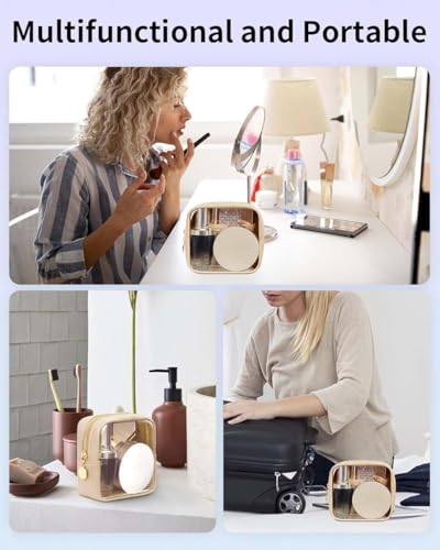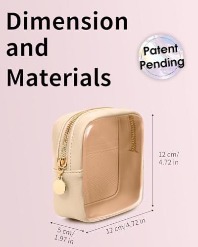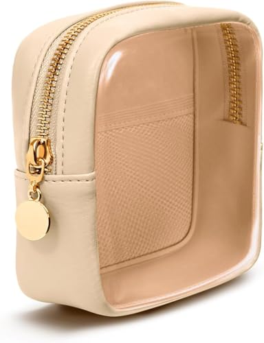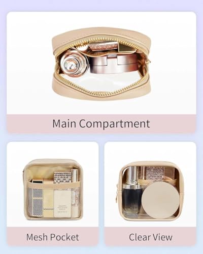 GQ - شنطة مكياج شفافة لحقيبة اليد، شنطة مكياج صغيرة للمحفظة، شنطة مكياج صغيرة للنساء، شنطة مستحضرات تجميل صغيرة مع جيوب سهلة الارتداء، جلد نباتي صديق للبيئة (بيج)