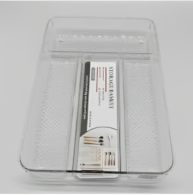 - تنظيم مثالي - مجموعة من 2 منظم أدراج بلاستيكي شفاف (5 × 18 سم). يمكن تكديس منظم الأدوات الفضية الصغير والرائع هذا لتوفير المساحة.