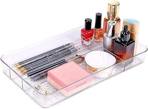 Generic - منظم أدراج بلاستيكي شفاف أدوات غير قابل للانزلاق صينية مائدة لأدراج المطبخ مستحضرات تجميل لطاولة الزينة تخزين المكياج في غرفة النوم وغرفة المعيشة 33 × 18 5 سم