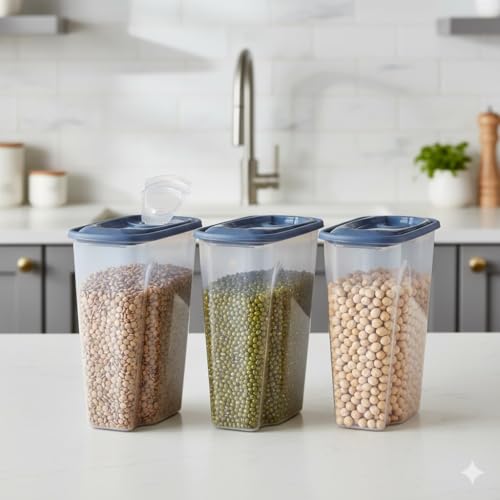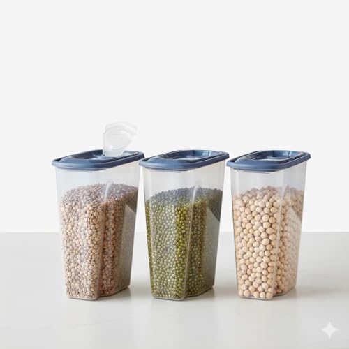 - سعة كبيرة: علبة تخزين بسعة 2.5 لتر مثالية لحفظ الحبوب والبقوليات والمعكرونة وغيرها من المواد الغذائية الجافة بشكل منظم