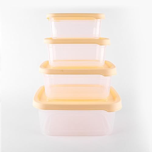 - مجموعة متكاملة: طقم من ٤ حافظات طعام بلاستيكية شفافة مع أغطية صفراء فاتحة للتخزين في الثلاجة