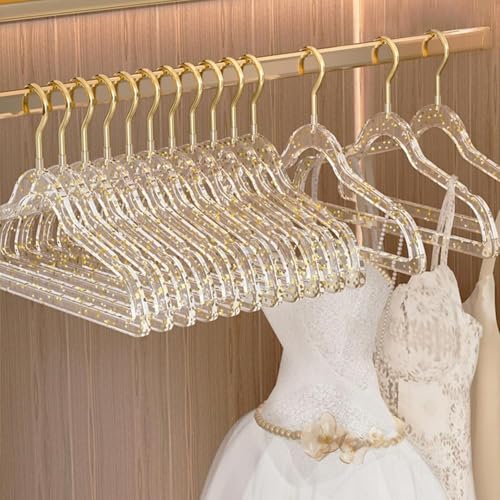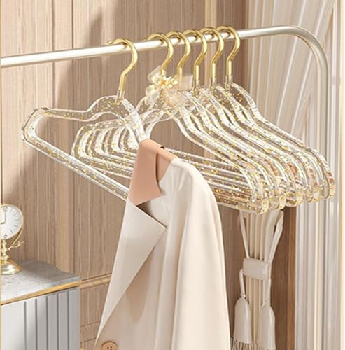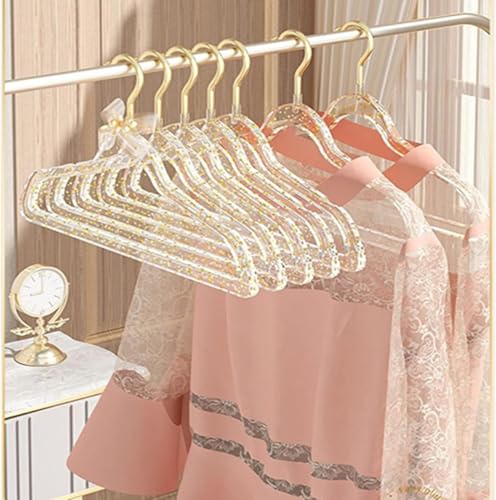 Generic - شماعات بلاستيكية شفافة بجليتر ذهبي، تصميم شديد التحمل، شماعات ملابس للمعاطف والفساتين، 10 قطع