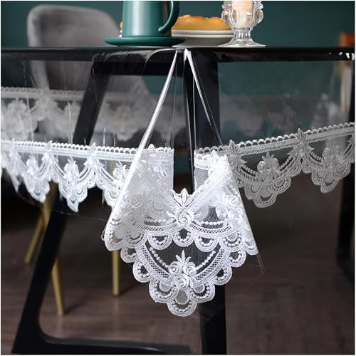 Generic - مفرش طاولة بلاستيكي شفاف على شكل مستطيل مقاوم للماء والزيت للاستخدام مرة واحدة غطاء دانتيل جميل مثالي لتزيين المطبخ وحفلات الزفاف أبيض 140 × 220 سم