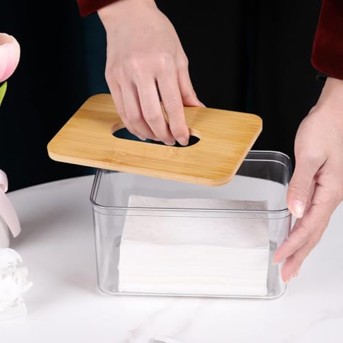 Generic - صندوق مناديل بلاستيكي شفاف مع غطاء خشبي، حامل مناديل أنيق للمنزل والمكتب