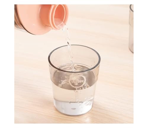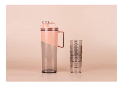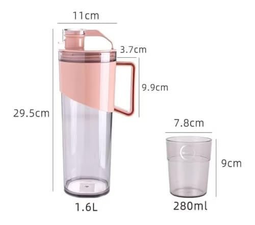 Laxson - زجاجة مياه بلاستيكية شفافة مع أكواب، مع مقبض، وردي، مع فلتر، للاستخدام المنزلي والمكتبي.