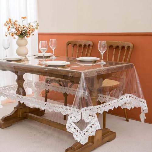 AREXOL - مفرش طاولة شفاف من بلاستيك بي في سي 150×210 سم، مفرش طاولة طعام شفاف سهل المسح، غطاء سطح مرن لمقاسات الطاولات المختلفة للاستخدام اليومي المنزلي
