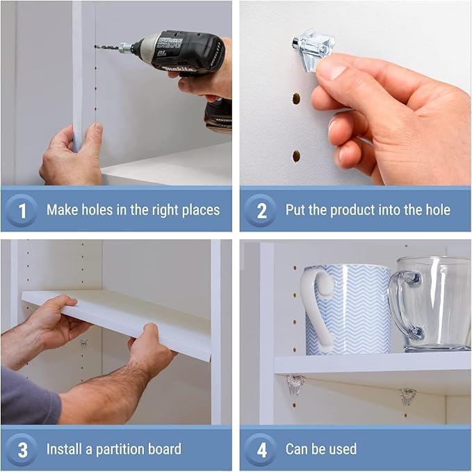 - Versatile Application: Perfect for adjustable shelving systems in kitchen cabinets, display cases, wardrobes, and storage units, allowing you to customise shelf heights to suit your needs