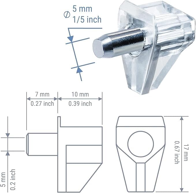 - Pin Specifications: 5mm diameter metal pin fits standard cabinet holes, with sturdy plastic support base designed to hold shelves securely in place for everyday use