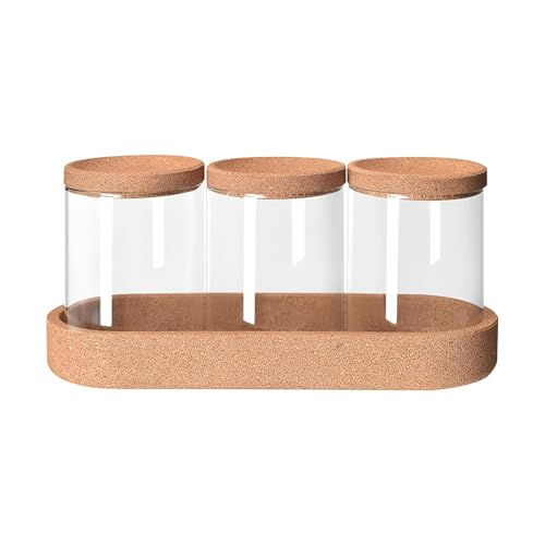 Generic - علب توابل شفافة ومزخرفة من 3 قطع مع جزء علوي من الفلين، مثالية للشاي والسكر والقهوة، تضيف الأناقة إلى مساحة مطبخك
