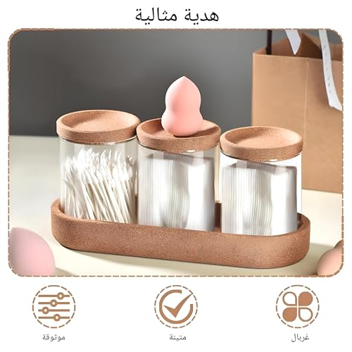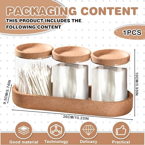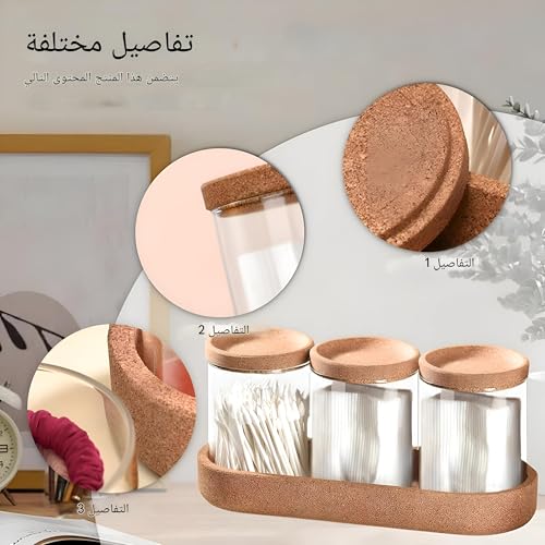 - يتكون هذا الطقم من ثلاث قطع أساسية تشمل حاوية شفافة مصنوعة من زجاج البوروسيليكات المتين وغير القابل للكسر، بالإضافة إلى حامل قاعدة مصنوع من مادة الفلين التي تضفي لمسة دافئة وأنيقة لموقع التخزين، ويحتوي على موزع وسادات قطنية لتخزين الوسائد والأعواد القطنية وخيط تنظيف الأسنان بطريقة منظمة وجذابة. تصميمه المدمج يناسب المساحات الضيقة ويحافظ على نظافة العناصر ويعزز التنظيم المنزلي بشكل أنيق.