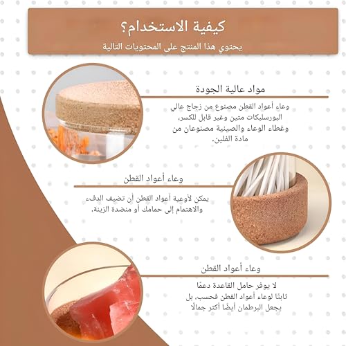 - مواد عالية الجودة: حاوية البراعم القطنية مصنوعة من زجاج متين وغير قابل للكسر مع محتوى عالي من البورسلين، غطاء الحاوية والرف مصنوعان من مادة الكتان. يتميز حامل البراعم القطنية بخصائص إغلاق قوية يمكنها الحفاظ على نضارة العناصر المخزنة بشكل فعال ومنع دخول الغبار والرطوبة.
