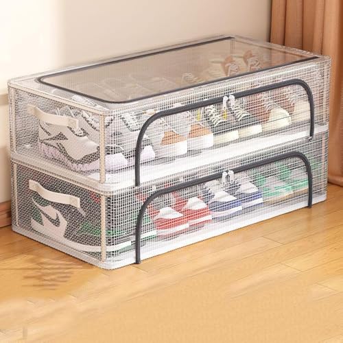 CityRiya-Long - منظم أحذية شفاف قابل للتكديس، رف أحذية قابل للطي للدولاب وتخزين الأحذية تحت السرير، مقاس 60 × 30 × 21 سم (عبوة من 2 قطع)