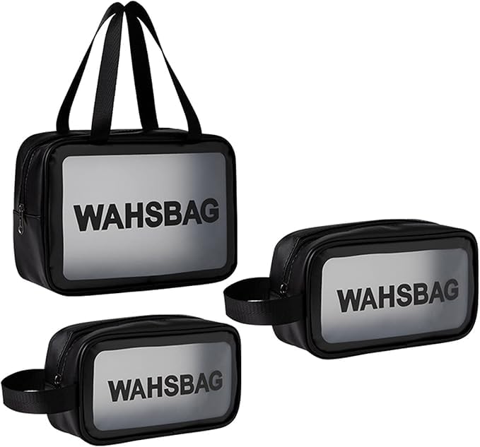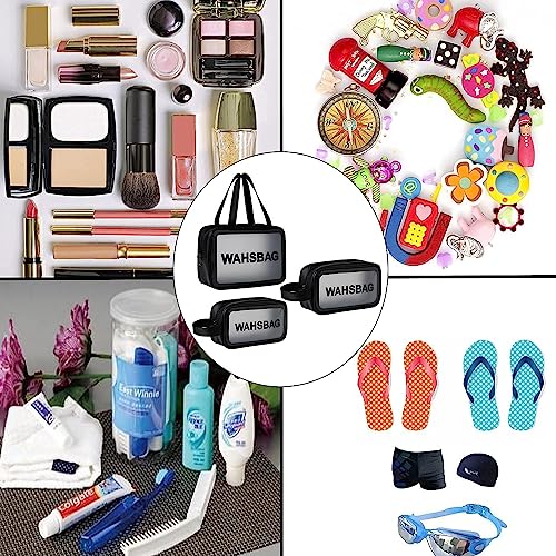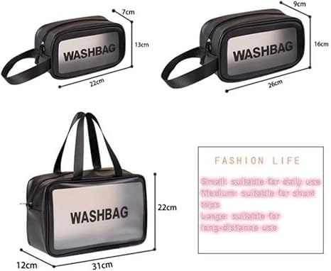 Generic - شنطة أدوات الزينة الشفافة شنط سفر لمستحضرات التجميل بسوستة ومقبض للمكياج والأمتعة متعددة الأغراض مضادة للماء للنساء والرجال والسفر أسود 3 قطع عصرية ولهيف