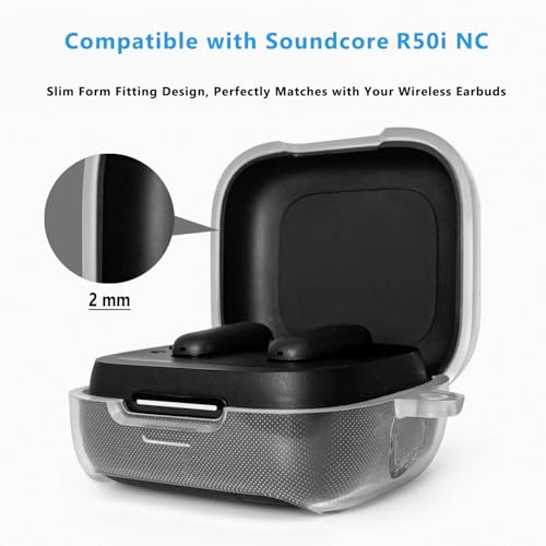 WELYOK - جراب شفاف مضاد للصدمات من بولي يوريثين مقاوم للحرارة مع سلسلة مفاتيح متوافق مع علبة سماعات أذن انكر ساوند كور، R50i NC