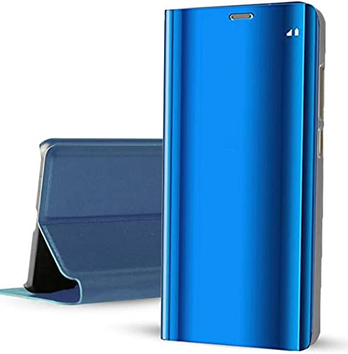 Generic - حافظة كلير فيو بحامل مراة بدون مستشعر لموبايل سامسونج a02s - ازرق، ألياف كربونيه أكريليك